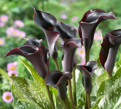 紫色:少数品种的马蹄莲花朵呈紫色,颜色鲜艳,非常吸引人。