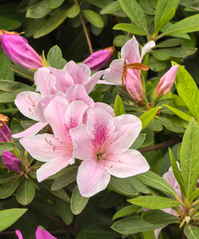 杜鹃花一般在春季开花,花期较短,通常持续数周,是许多园林和庭院中常见的观赏植物。