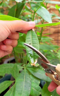 修剪应从叶片的基部进行,避免剪到芽点或新芽,以免影响植物的生长。