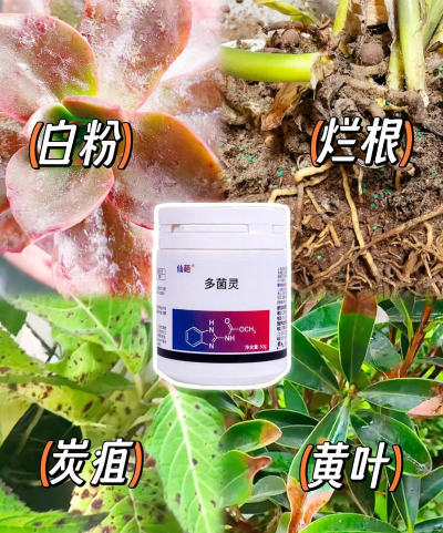 安全注意事项:多菌灵具有一定的毒性,使用时应佩戴手套、口罩等防护装备,避免接触皮肤或吸入粉尘。