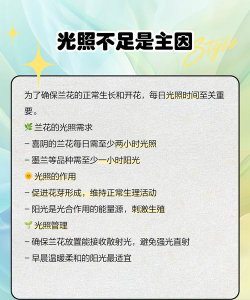 原因:兰花需要充足的光照,尤其是散射光,过少会导致植株生长迟缓、叶片变小、花期缩短。
