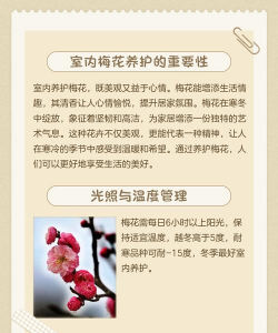 以上是室内梅花的养殖方法,根据具体生长情况可适当调整。如需进一步帮助,请随时告知。