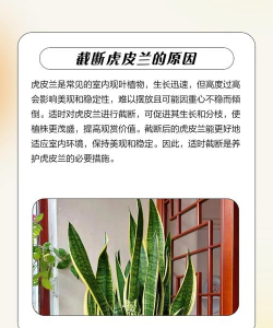 虎皮兰(Sansevieria)是一种常见的室内观赏植物,因其叶片呈虎皮状而得名。在生长过程中,如果虎皮兰出现高瘦(即植株过于高大、叶片变薄、生长势减弱)的情况,可以通过修剪来改善其形态和促进新芽生长。