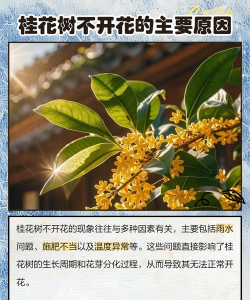 桂花树不开花是许多养花爱好者遇到的常见问题,通常与光照、土壤、水分、肥料、修剪等因素有关。以下是常见的原因及解决方法: