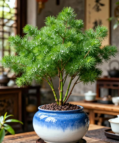 蓬莱松的栽培管理比较简便,一般春、夏季生长期每隔半个月施肥一次,以氮、钾为主,平时注意盆土不能积水,否则会引起烂根、黄叶,秋季应逐渐减少浇水。