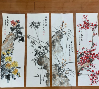 梅花四君子通常指的是梅花、竹、兰、菊四种植物,它们在传统文化中常被并称,象征高洁、坚韧、清雅、淡泊等品质。以下是梅花四君子的简要介绍: