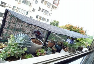 遮阳网是阳台养花遮光的常见选择。根据植物的光照需求,可以选择不同透光率的遮阳网: