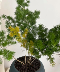 某些病菌或害虫会侵害蓬莱松,导致叶片发黄、枯萎。