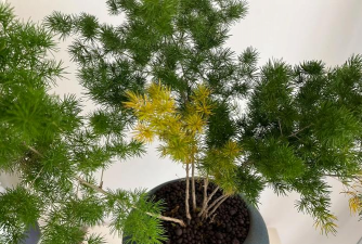 蓬莱松生长过程中需要充足的养分,如果缺乏氮、磷、钾等关键营养元素,可能导致叶片发黄。