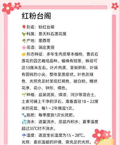 如需进一步了解红粉台阁的养护细节,可提供具体品种或生长环境,以便给出更精准的建议。