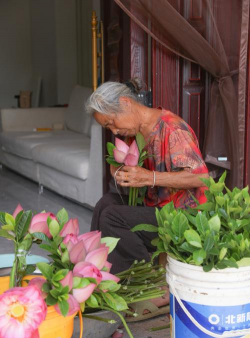 老头养花卖