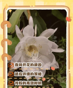 昙花的花粉在白天不易干燥,而夜间温度较低,湿度较高,有利于花粉的保存和传播。夜晚开花可以确保花粉在适宜的环境中被传粉,提高授粉成功率。
