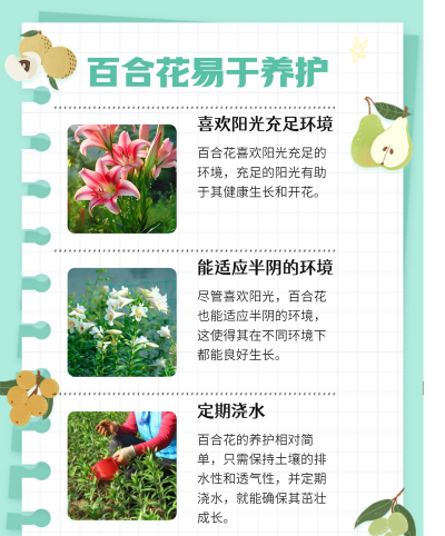 如需更具体的描述,可根据百合的具体种类(如大百合、小百合、洋百合等)进行进一步说明。
