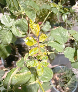原因:月季在生长过程中需要充足的氮、磷、钾等营养元素,若土壤中营养元素不足,会导致叶片出现打卷、发黄等现象。