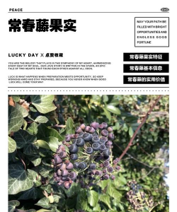 常春藤果在自然环境中起到一定的生态功能,如帮助植物传播种子,促进植物的种群扩散。观赏价值: