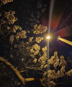 夜间环境较暗,花朵的光合作用停止,因此花朵的形态和颜色会有所变化,呈现出一种自然的、柔和的状态。