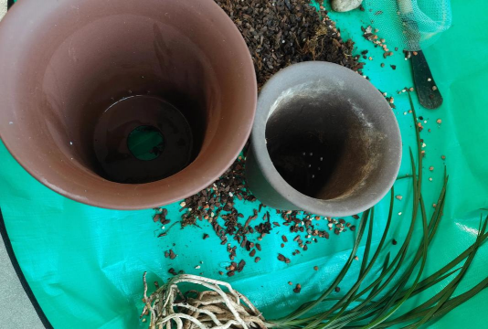 填充新土:用新土填满花盆,轻轻压实,确保植物稳固。