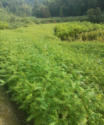 播种育苗:选肥沃蓬松、排水良好泥土为圃地,每亩施腐熟栏肥1000公斤。12月至翌年3月播种,播前用50℃温水浸种1—2天。每亩播种40公斤,行距30厘米,株距15厘米左右,播种时种孔朝上,播后覆土厚度为3厘米。当幼苗展示第一对真叶时,选阴天联结间苗进行补株移栽。7月上旬后苗木进入生长茂盛期,应每隔15天开沟深施化肥1次,可联结雨后松土进行。8月中旬停滞施氮肥,以节制苗木后期疯长,提高苗木木质化程度,10月中下旬苗木停滞高生长。1年生苗高1米以上,地径1—1。5厘米,亩产苗7000—8000株。