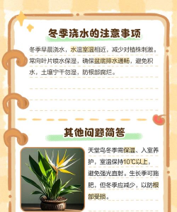 通过以上方法,可以帮助天堂鸟在冬季健康生长。如有特殊情况,建议根据具体品种和生长状态进行调整。