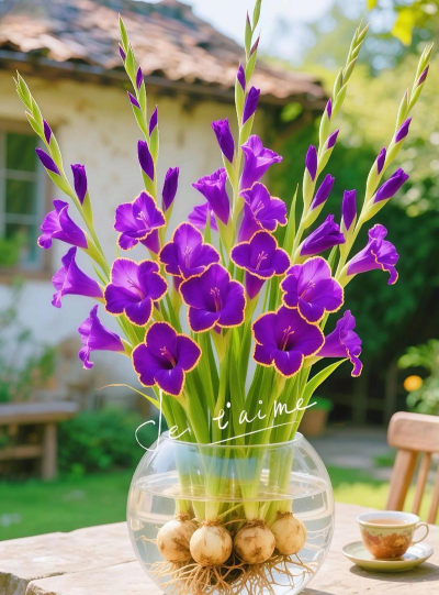 多年生落叶球根类草本植物。球茎扁圆形,有褐色膜质外皮,基生叶剑形,排成二列。花茎自叶丛中抽出,高约50厘米~80厘米。穗状花序顶生,花单生于苞片内,12~24朵互生。花被片有红、白、黄、紫等色,还有复色,多为夏秋开花,见图3-7。