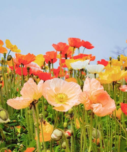 虞美人花型多样,有的品种花朵较大,有的则较小,花色也略有不同,但总体上都具有较高的观赏价值。在种植时,应选择适合当地气候和土壤条件的品种,并注意合理施肥和浇水,以保证其健康生长和良好开花。