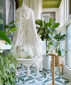 阳台养花沙发,是指在阳台或室内空间中,将花盆或花架放置在沙发旁边,以便于观赏和养护植物。这种布置方式在现代家居中越来越流行,尤其适合阳台空间有限、希望有美观和实用结合的养花爱好者。