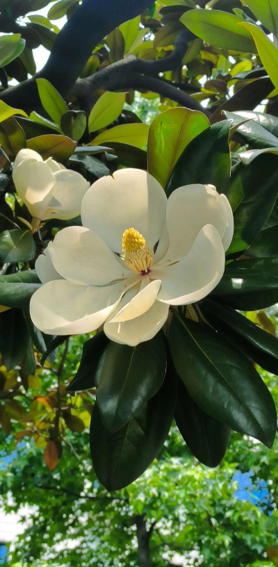 广玉兰的花朵具有淡淡的清香,在花期时香气浓郁,能够吸引昆虫,促进授粉。