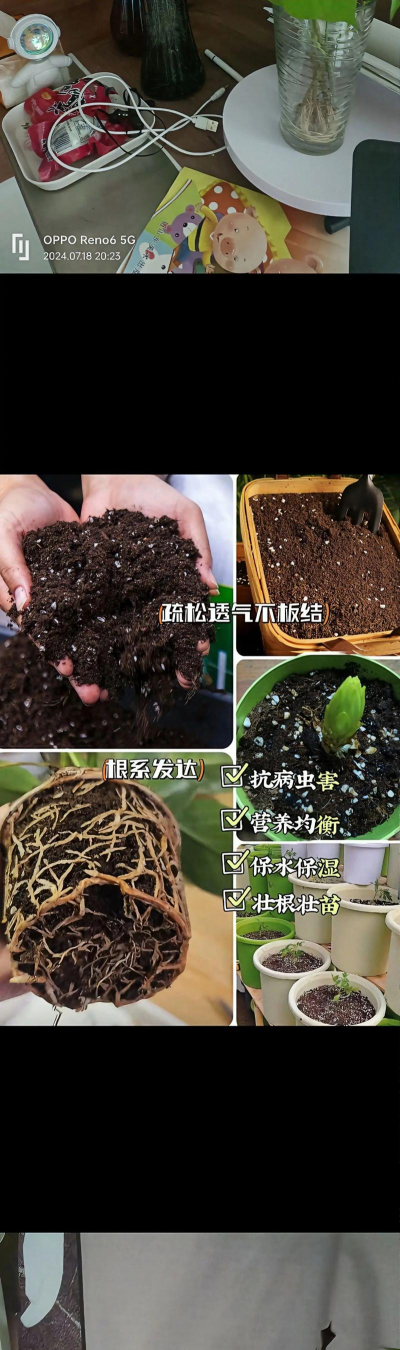 - 通常与珍珠岩、蛭石等颗粒土混合使用,提高透气性。