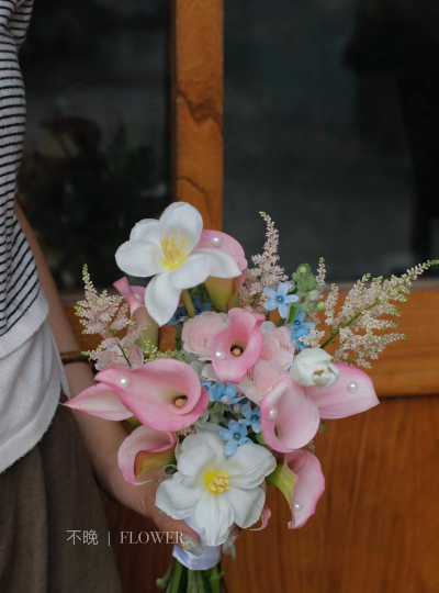 马蹄莲与玫瑰搭配,形成“花中贵族”的景观,适合在庭院或花坛中种植。