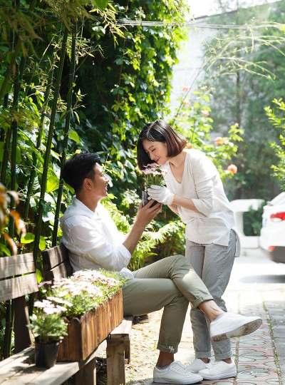 - 使用简单的道具,如花盆、花束,或自然背景,如草地、墙角,增加照片的意境。
