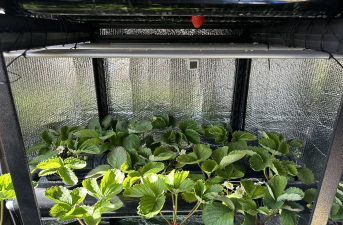 11月中旬到1月份进行智能间歇性补光,以促进草莓的营养生长,补光最好采用红色植物补光灯进行补光,以提高其光合作用的效率。