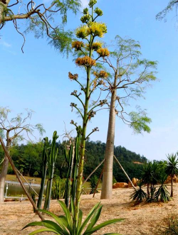龙舌兰开花后的变化: