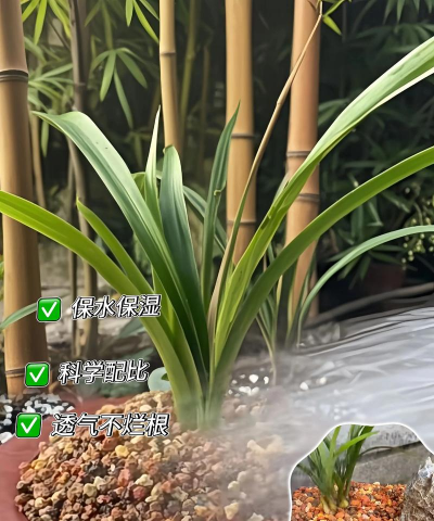 - 使用椰糠、稻壳、松针等:这些材料透气性好,保水性强,适合用于兰花的铺面。