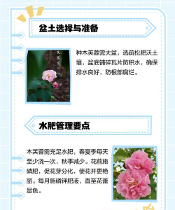 木芙蓉盆栽宜选用较大的瓷盆或素烧盆,盆土要求疏松肥沃、排水透气性好,生长季节要有足够的水分。冬季移至温度在0℃至5℃的室内越冬,保证其充分休眠,以利于来年开花。