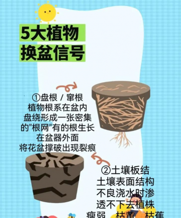 - 如果盆土板结、干硬,或者出现明显的积水,说明需要换盆。