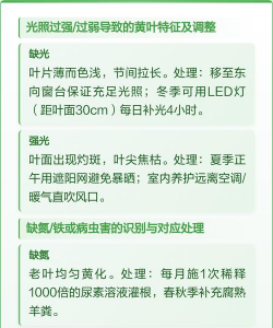 症状:叶片发黄,尤其是冬季或夏季温度过高或过低。