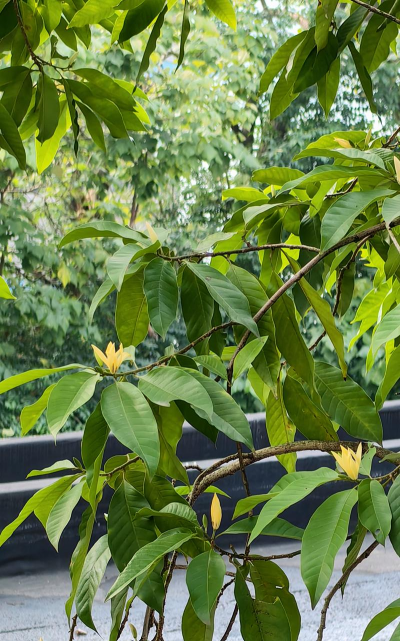在生长过程中,黄桷兰的枝干不直立,而是略带弯曲,形成一种自然的弧度,增强了观赏性。