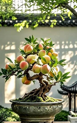 桃树盆栽造型可以通过修剪、搭配盆器、搭配绿植等方式实现。以下是几种常见的造型方法: