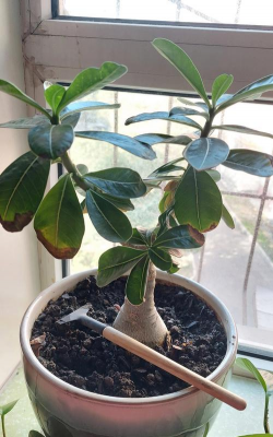 沙漠玫瑰需要充足的阳光,但过强的光照也可能造成叶片灼伤或叶面枯黄。