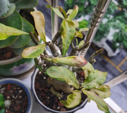 沙漠玫瑰易受病虫害影响,如叶斑病、虫害等,导致叶片脱落。