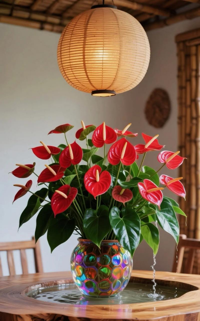 保持土壤湿润但不积水,有助于红掌健康生长,促进叶片扩展。养分充足