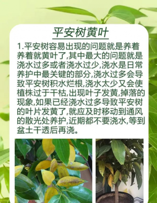- 解决方法:将平安树移至光照充足的位置,每天至少保证6小时以上阳光照射。