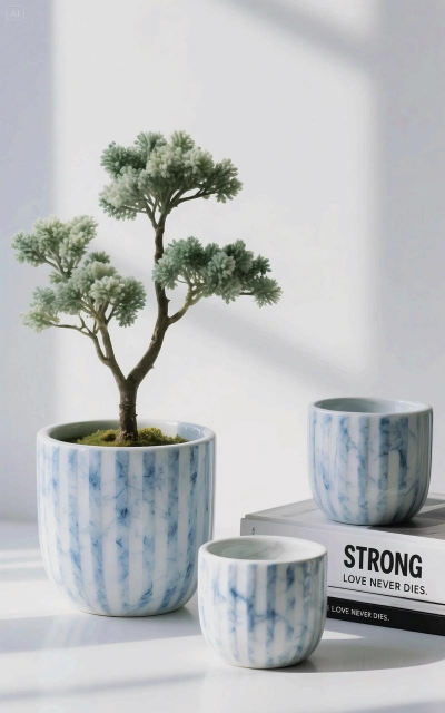 盆景植物通常需要精心的照料,瓷花盆因其透气性好,适合种植一些造型美观的盆景植物,例如: