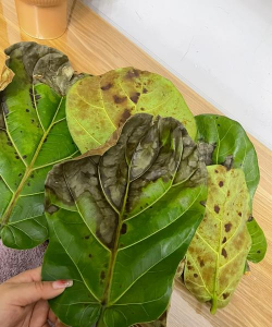 - 症状:叶片出现不规则形斑块,颜色呈褐色或黑色,边缘较深,可能伴有霉斑。