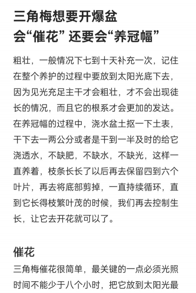 三角梅花掉了,可能是由于环境因素、病虫害或管理不当等原因造成的。以下是几种常见的处理方法:观察花苞是否正常:如果花苞已经掉落,可能是由于花期过早、温度过低或光照不足。检查植株是否有病虫害:如果花苞掉落是由于病虫害引起,需及时处理。温度控制: