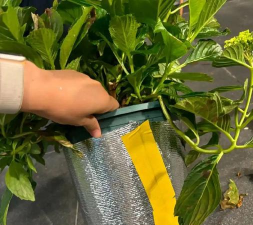 将植物根系植入快递袋中,确保植物根部不被挤压,同时避免土壤过密。密封与通风: