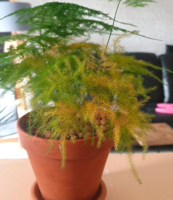 文竹喜半阴环境,如果光照过强或不足,都可能导致叶片发黄、干枯。