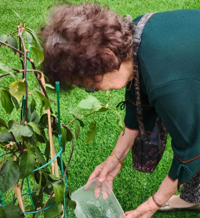 赵奶奶非常重视植物的健康,她会定期检查植物是否有病虫害: