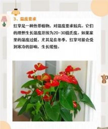 红掌适宜的生长温度为 15-30℃,温度过低或过高都会影响开花。