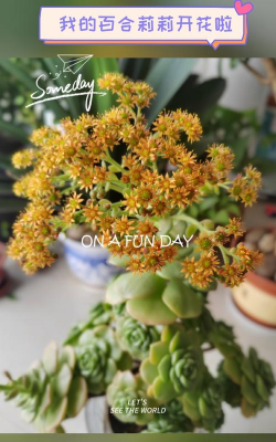 多肉香水开花(也称为多肉香水百合)是一种观赏植物,属于多肉植物的一种,通常具有芳香性和观赏价值。它的外观特征如下:
